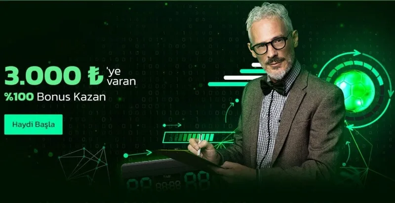 Hesabını Aç, Bonusları Topla. Bahis heyecanında, Casino eğlencesinde ve Canlı Casino'nun parıltısında, kontrolün tamamen sende olduğu bir deneyimi başlatmak için hemen hesabını oluştur. Zaten hesabın varsa harika! Yolu yarıladın demektir, kazanmaya çok daha yakınsın! Ardından %100 Bonusları aktive etmek için hesabına para yatır.